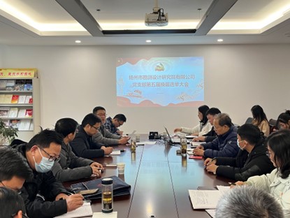 2022年12月2日,揚(yáng)州市勘測(cè)設(shè)計(jì)研究院有限公司黨支部第五屆換屆選舉大會(huì)在黨員之家莊嚴(yán)召開。大會(huì)在莊嚴(yán)的《國(guó)歌》聲中拉開帷幕,會(huì)議由李泉同志主持。